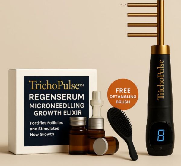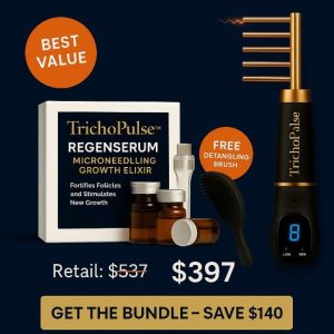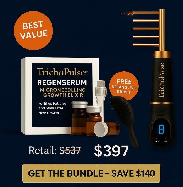 Get the TrichoPulse™ 9000 and RegenSerum Growth Elixir — the most advanced home-use scalp restoration system on the market. Transform your hair from stressed to thriving.
