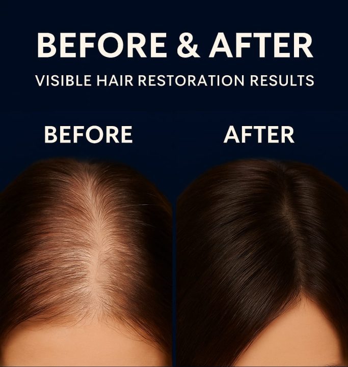 Many users notice improved scalp comfort and reduced shedding in the first 2–4 weeks. More visible fullness and new growth typically appear by weeks 6–12 with consistent use.
